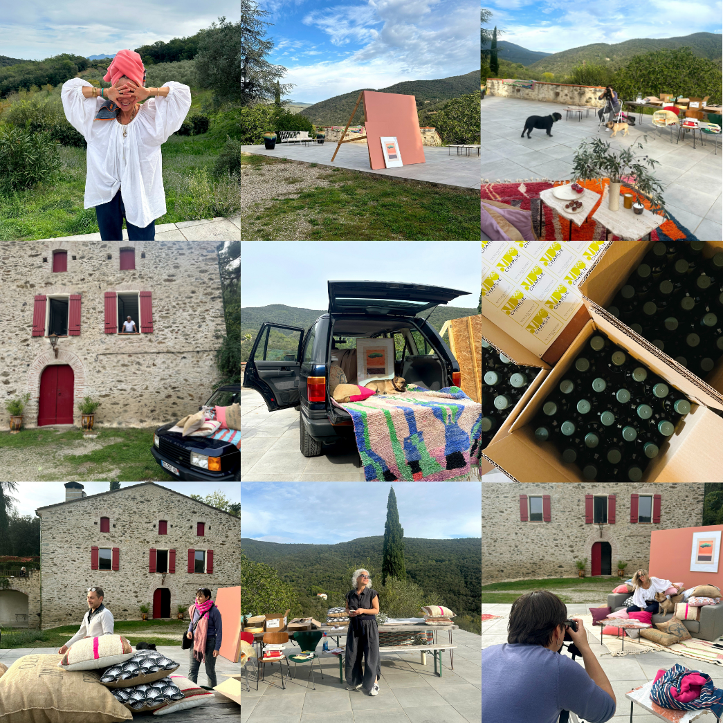 Fabric scraps I’ve been collecting for years - now pillows. Leather remnants from Italy create unique seating by the incredibly talented Mon at Nubuckcuir. Messieurs Mathis & David forge chairs and table bases in Cerét, France. Marble, sourced locally has a new purpose - as cocktail tables. Aurelie has helped turned some thoughts into whispers on handblown, recycled glass. Amy Korb in Brooklyn, brought stoneware ceramics to life – (I had been dreaming of those for years). Manu and Celine and some good friends worked the olive fields to produce Charlie Olive Oil – it couldn’t be more organic. An obsession with smell, and an old house with dogs called for – handmade candles, using found treasures (I have enough toothbrush cups)... and well, you get the idea.